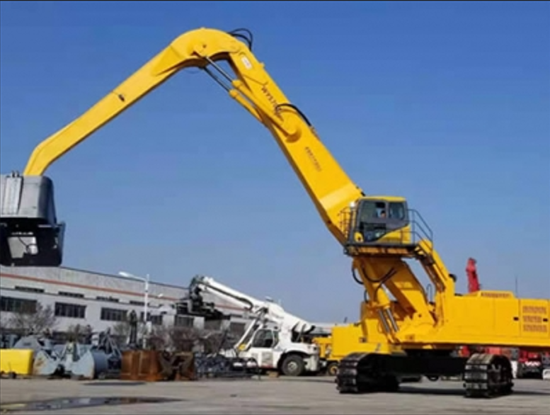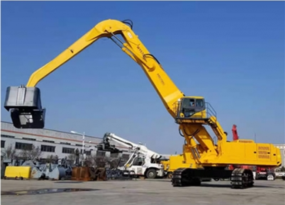 The equipment adopts a high-power "national three" standard engine, a 380V Siemens motor, and the world's first "dual power" grabber that uses Schneider control system to drive and control two sets of Rexroth hydraulic power mechanisms and pilot hydraulic control. The machine is designed with a wide structural beam and a reinforced two-section main boom that can replace positive and negative difference. The maximum lifting weight is 25 tons and the maximum operating radius is 18 meters. Within the operation radius of 5 to 12M, it can be equipped with 5.0m3 clamshell grab or 2.5m3 plum shaped scrap grab.