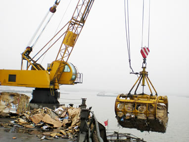八達重工產(chǎn)品--散亂廢紙、成捆廢紙的裝卸車、裝卸船、堆高碼垛、轉(zhuǎn)運作業(yè),是各大紙業(yè)公司、廢紙收儲場所的好幫手。由于設計了液壓動力輸出裝置,更換不同的液壓抓斗后,可分別對木材、草葦、煤炭、沙石等物料進行裝卸作業(yè),實現(xiàn)一機多用的功能。